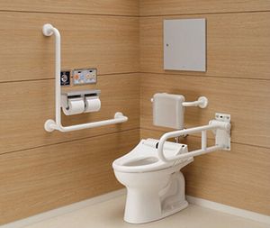 浴室は水で滑りやすくなっているうえに、立ったり座ったりするので転倒しやすくとても危険です。 出入り口、浴槽、洗い場の壁の3カ所にはぜひ手すりを設置したいもの。 浴槽への出入りもしっかりサポート。